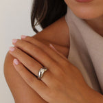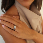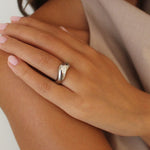 Double the style – A sleek band meets a zircon-lined one, creating the perfect stacked look in a single ring.
