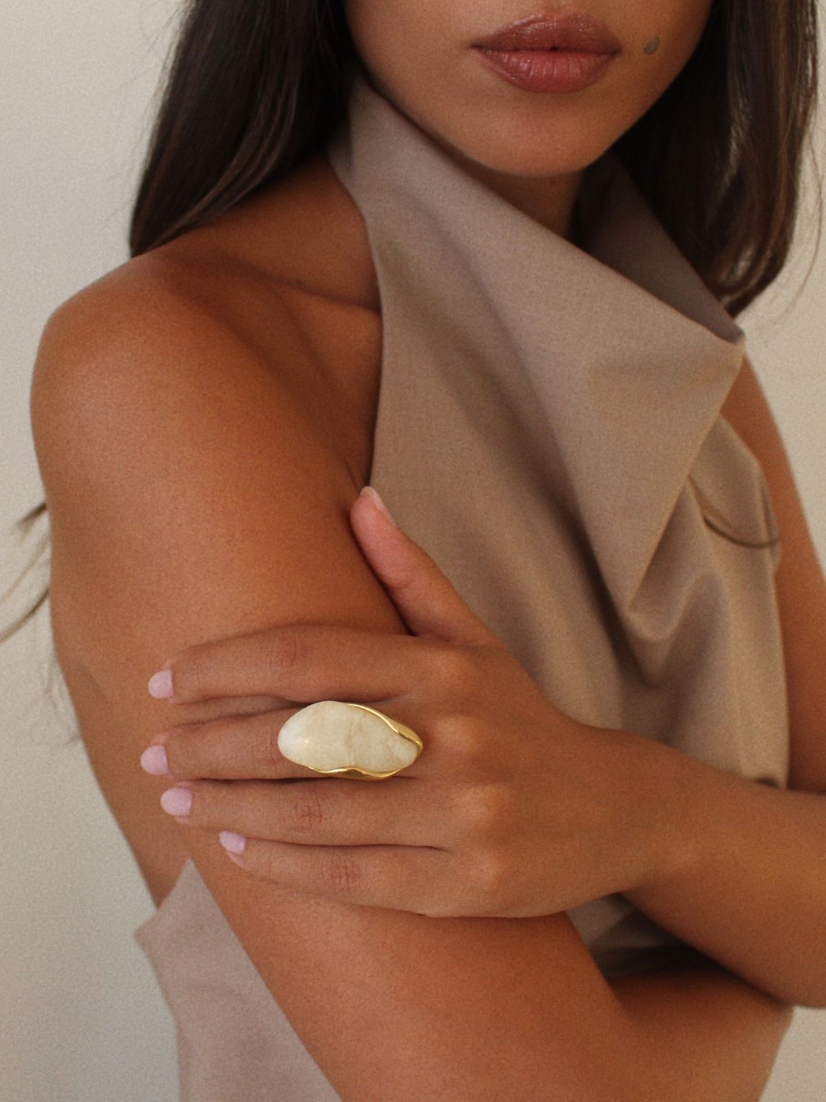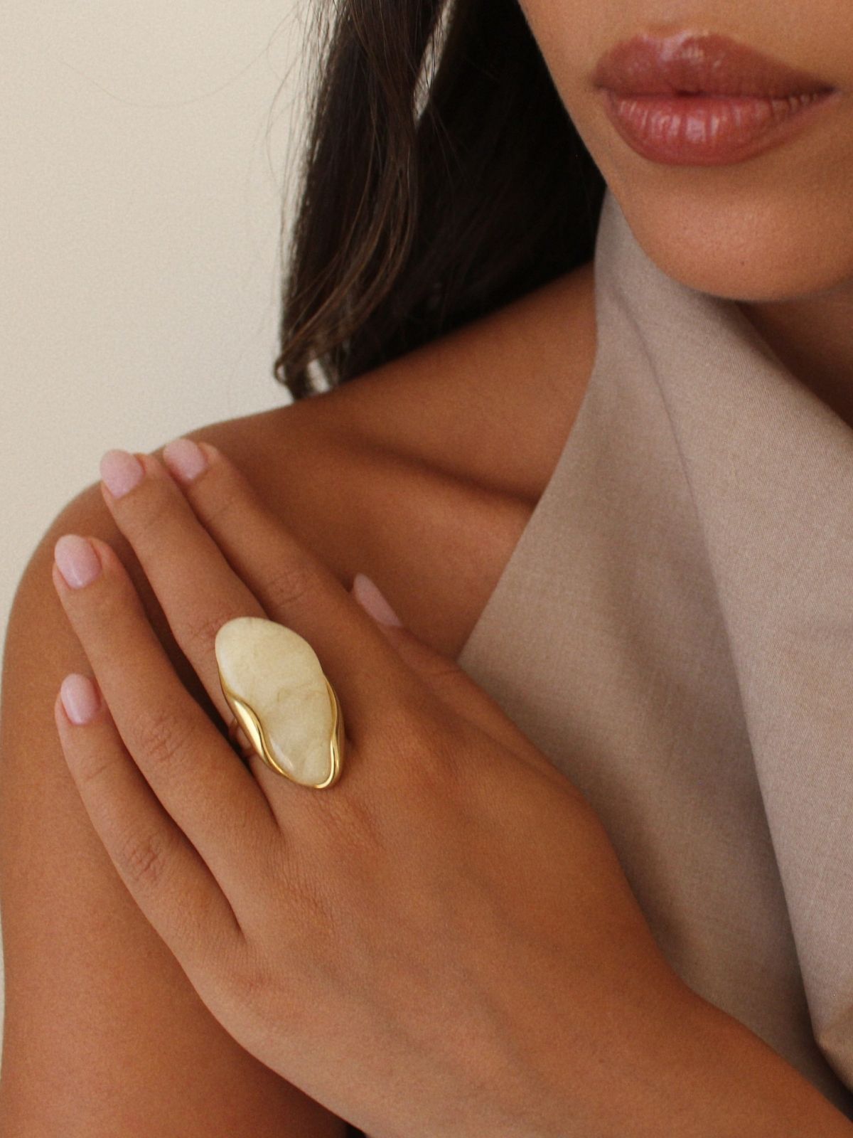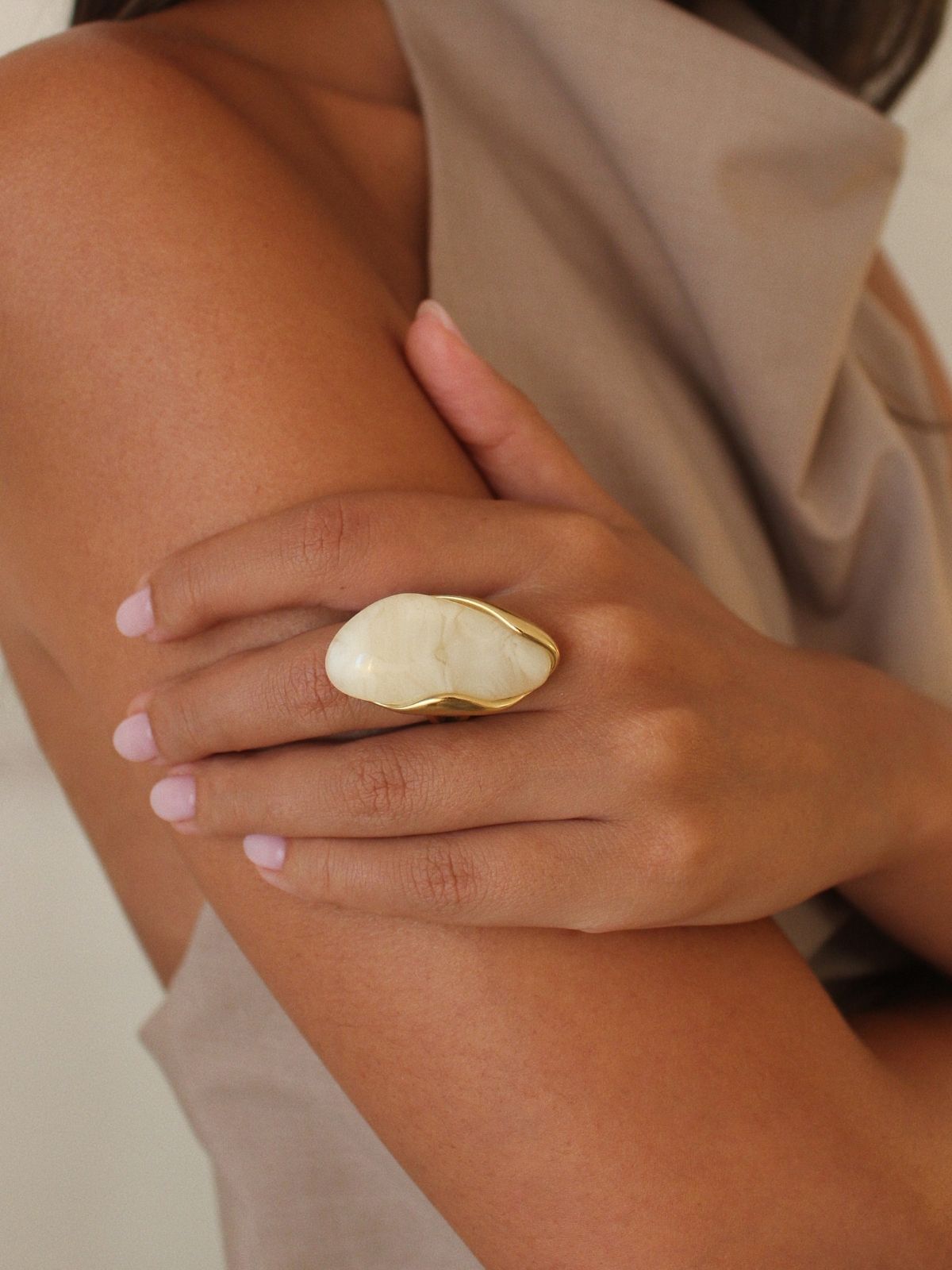 Paloma Ring — Bold by nature, this maxi ring features an oversized resin stone with an organic, sculptural form, set on a golden adjustable band.