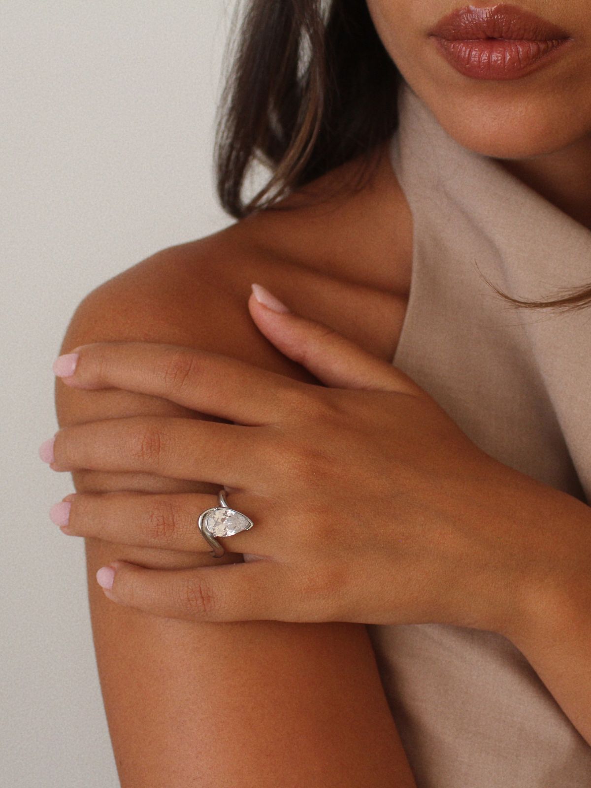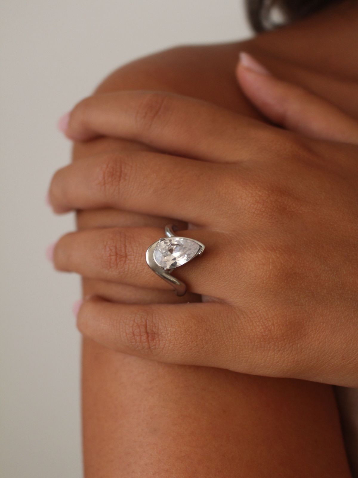 The Starlet Ring — A sleek, refined silhouette crowned with a luminous white zircon that steals the spotlight. Designed to shine from every angle, it’s the definition of quiet luxury.