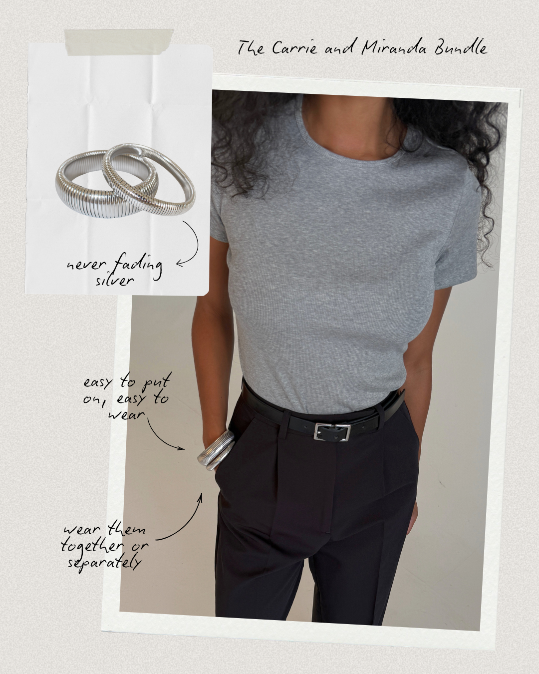 Two icons, one perfect match. The Miranda bracelet brings bold sophistication, while the Carrie bracelet adds effortless elegance—together, they create a timeless yet statement-making duo. Wear them solo or stacked for the ultimate Rowzies look. Get them together and save.