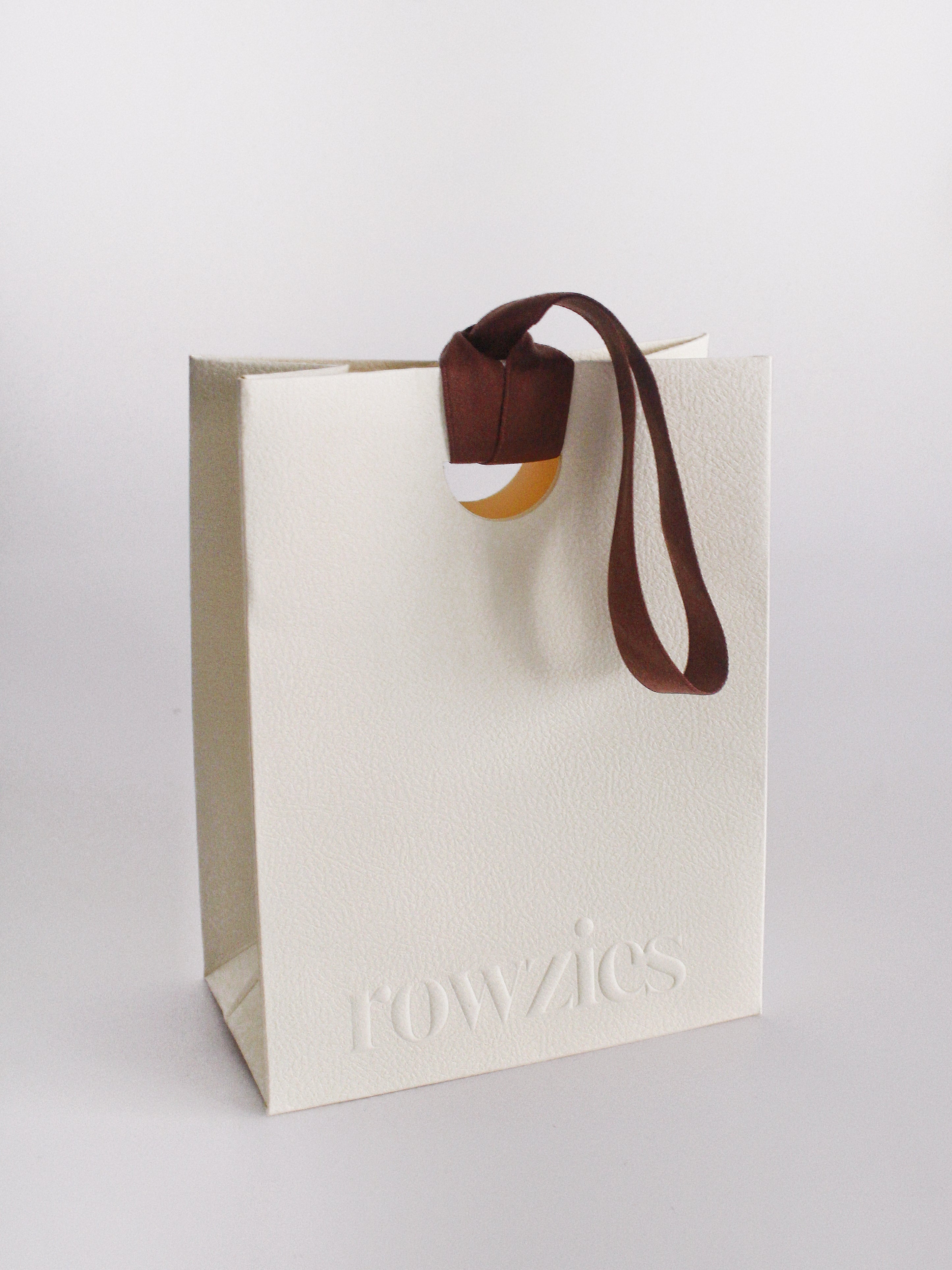 Our signature gift bag is a celebration of everything Rowzies stands for elegance, attention to detail, and unapologetic femininity. Crafted from textured premium paper, finished with an embossed Rowzies logo, and topped with a smooth satin handle, it’s more than packaging, it’s part of the experience.