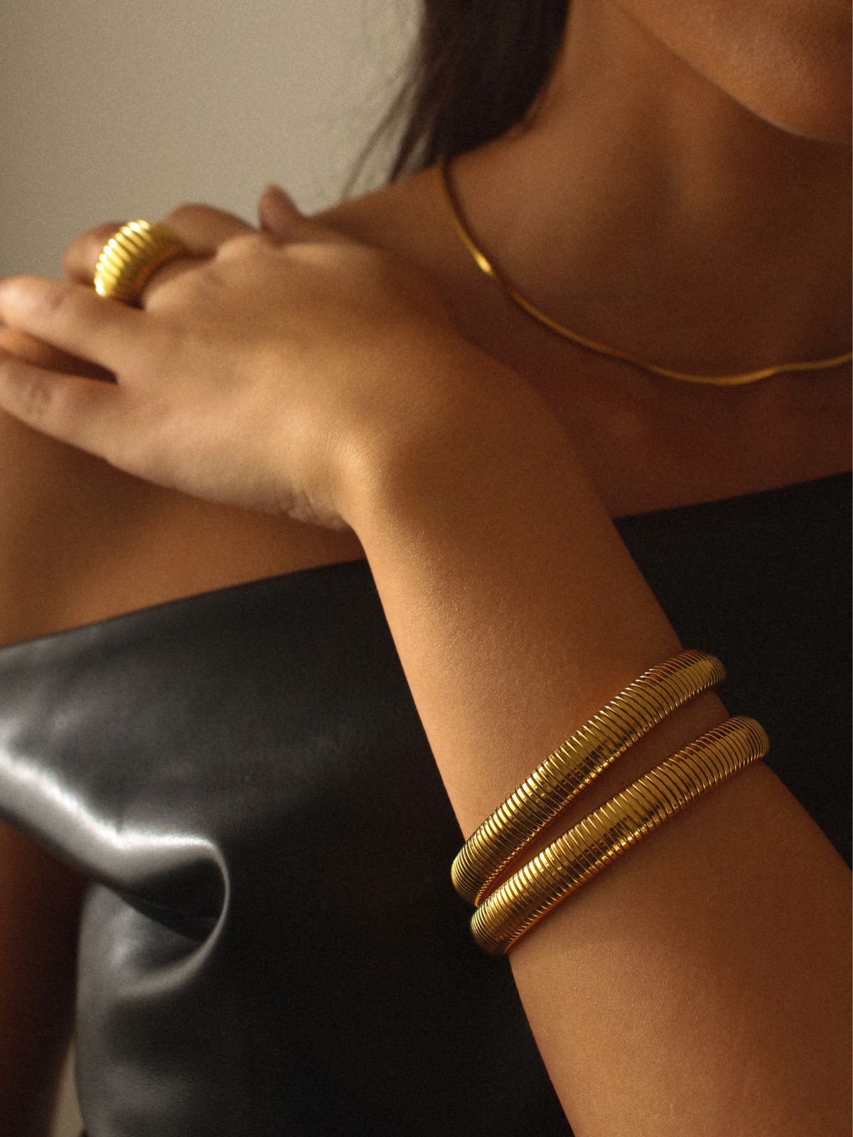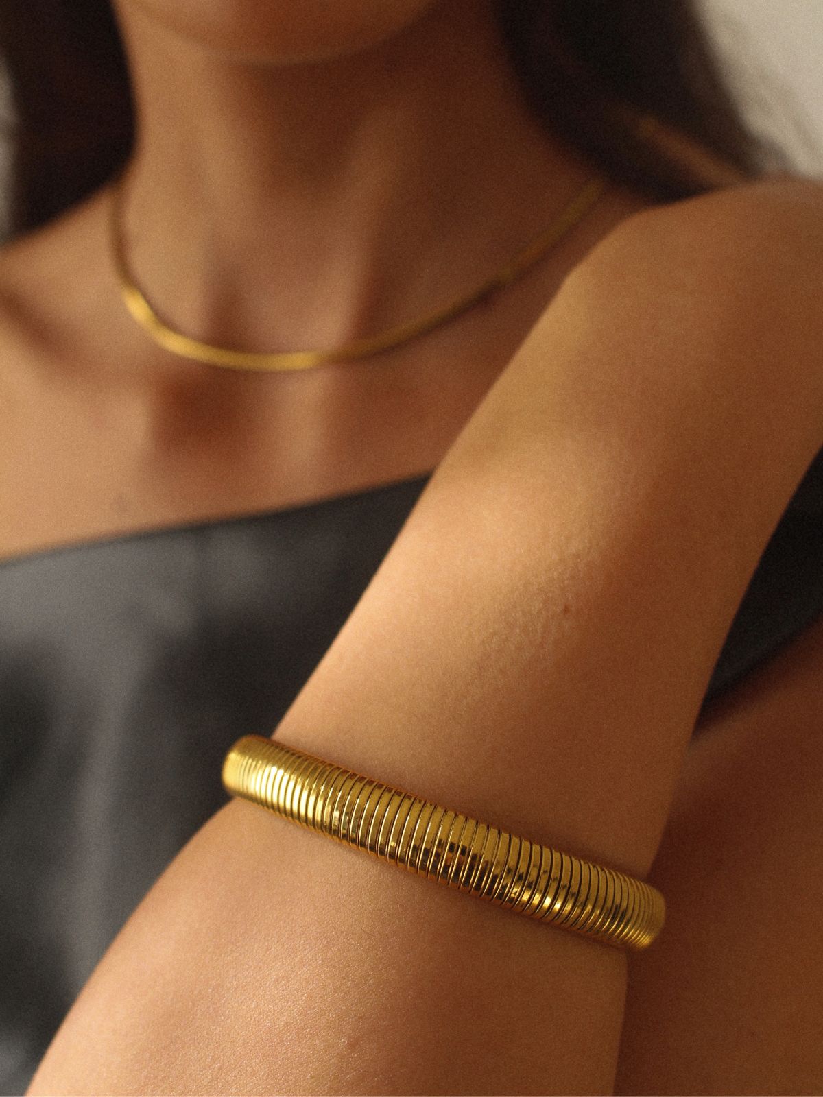 Our pieces are made with premium, tarnish-resistant materials, like 18k PVD gold-plated stainless steel, ensuring lasting beauty and quality.